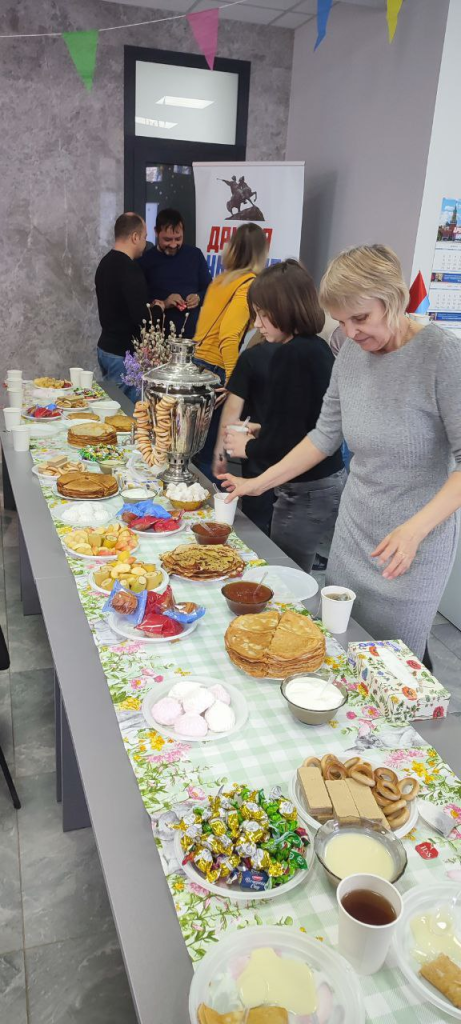 После выступления зал наполнился песнями – застольными и народными, звучащими на русском и украинском языках. Голоса слились в едином порыве, создавая атмосферу гармонии и взаимопонимания. Праздник завершился большим чаепитием с блинами, сгущенкой и вареньем, за столом которого участники делились своими мыслями, воспоминаниями и надеждами.