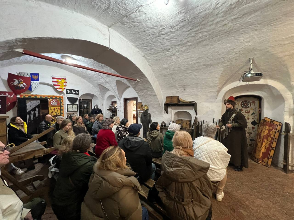 Участники экскурсии, сопровождаемые гидом в историческом костюме, прошли по тем самым каменным переходам, где 400 лет назад ополченцы Кузьмы Минина и Дмитрия Пожарского принесли клятву освободить Москву.